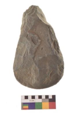 | Description / विवरण | Specimen of triangular shaped Axe with lenticular section and pointed butt. It is under side flat and upper slightly bulging out. |