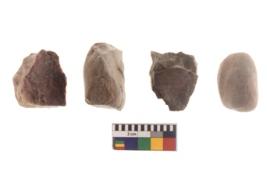 | Description / विवरण | There are n 4 of utilized worked cores and show irregular scar pattern. Three have a broken tip. |