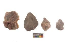 | Description / विवरण | There are n 4 of utilized worked cores and show irregular scar pattern on both dorsal and ventral side. Three are tapering at one end. |