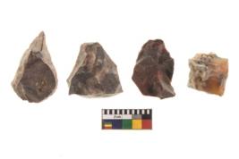 | Description / विवरण | There are n 4 of utilized worked cores and show irregular scar pattern on both dorsal and ventral side. Two have a broken tip. |