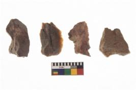 | Description / विवरण | There are n 4 of utilized worked cores and show irregular scar pattern on both dorsal and ventral side. Two have a broken tip. |