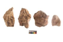 | Description / विवरण | There are n 4 of utilized worked cores and show irregular scar pattern on both dorsal and ventral side. Three are tapering at one end. |