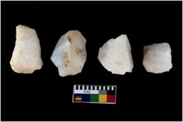 | Description / विवरण | There are n 4 of utilized worked cores and show irregular scar pattern on both dorsal and ventral side. Two have a broken tip. |