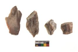 | Description / विवरण | There are n 4 of utilized worked cores and show irregular scar pattern on both dorsal and ventral side. Three are tapering at one end while one has a broken tip. |