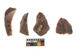 | Description / विवरण | There are n 4 of utilized worked cores and show irregular scar pattern on both dorsal and ventral side. Two are elongated in shape. |
