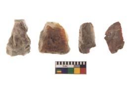 | Description / विवरण | There are n 4 of utilized worked cores and show irregular scar pattern on both dorsal and ventral side. Three have a broken tip. |