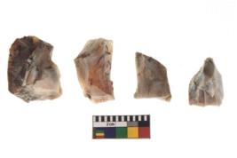 | Description / विवरण | There are n 4 of utilized worked cores and show irregular scar pattern on both dorsal and ventral side. Three have a broken tip. |