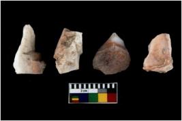 | Description / विवरण | There are n 4 of utilized worked cores and show irregular scar pattern. Two are taperinga at one end. |