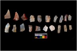| Description / विवरण | There are n 20 Flake tool; There are multidirectional irregular scar pattern on them. few have blunt edges, Some of them are tapering at one end. |