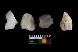 | Description / विवरण | There are n 4 of utilized worked cores and show irregular scar pattern on both dorsal and ventral side. Three are tapering at one end. |