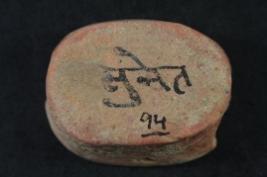 | Description / विवरण | It s a disc made of terracotta. Colour is red and well fired. There are some incise cut marks on its surface. |