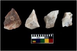 | Description / विवरण | There are n 4 of utilized worked cores and show irregular scar pattern on both dorsal and ventral side. Three are tapering at one end. |