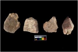 | Description / विवरण | There are n 4 of utilized worked cores and show irregular scar pattern. Two are tapering at one end. |