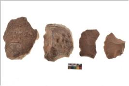 | Description / विवरण | There are n 4 utilized flake cores. There are multidirectional irregular scar pattern on both dorsal and ventral face of the flake cores. |