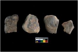 | Description / विवरण | There are n 4 of utilized worked cores and show irregular scar pattern on both dorsal and ventral side. Two have a broken tip. |