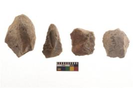 | Description / विवरण | There are n 4 of utilized worked cores and show irregular scar pattern on both dorsal and ventral side. Two have a broken tip. |