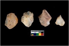 | Description / विवरण | There are n 4 of utilized worked cores and show irregular scar pattern on both dorsal and ventral side. Two are tapering at one end. |