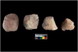 | Description / विवरण | There are n 4 of utilized worked cores and show irregular scar pattern on both dorsal and ventral side. Two have a broken tip. |