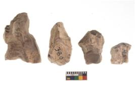 | Description / विवरण | There are n 4 of utilized worked cores and show irregular scar pattern on both dorsal and ventral side. Two have a broken tip. |