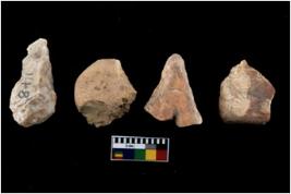 | Description / विवरण | There are n 4 of utilized worked cores and show irregular scar pattern on both dorsal and ventral side. One has a flat base. |