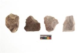 | Description / विवरण | There are n 4 of utilized worked cores and show irregular scar pattern on both dorsal and ventral side. Two have a flat base. |