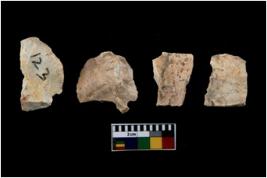 | Description / विवरण | There are n 4 of utilized worked cores and show irregular scar pattern on both dorsal and ventral side. Two have a flat base and a broken tip. |