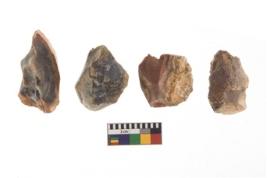 | Description / विवरण | There are n 4 of utilized worked cores and show irregular scar pattern. Three are tapering at one end. |