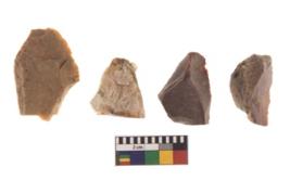 | Description / विवरण | There are n 4 of utilized worked cores and show irregular scar pattern on both dorsal and ventral side. Three are tapering at one end. |