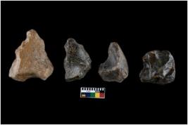 | Description / विवरण | There are n 4 of utilized worked cores and show irregular scar pattern on both dorsal and ventral side. Three are tapering at one end. |