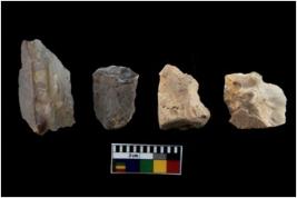 | Description / विवरण | There are n 4 of utilized worked cores and show irregular scar pattern on both dorsal and ventral side. Three have a broken tip. |