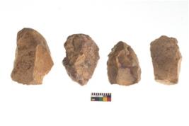 | Description / विवरण | There are n 4 of utilized worked cores and show irregular scar pattern on both dorsal and ventral side. Two have a flat base. |