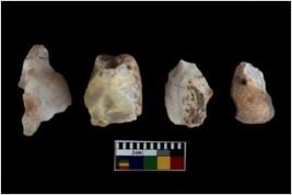 | Description / विवरण | There are n 4 of utilized worked cores and show irregular scar pattern on both dorsal and ventral side. Two have a broken tip. |