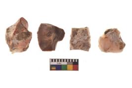 | Description / विवरण | There are n 4 of utilized worked cores and show irregular scar pattern on both dorsal and ventral side. Three have a broken tip. |