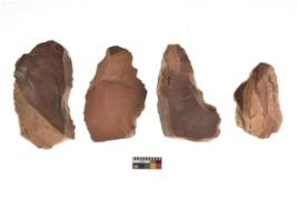| Description / विवरण | There are n 4 of utilized worked cores and show irregular scar pattern on both dorsal and ventral side. Three are tapering at one end. |
