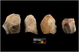 | Description / विवरण | There are n 4 flake cores. All of them are fully fluted flake cores without any trace of crested ridge flakes. |