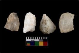 | Description / विवरण | Specimen of a cores with several broad fluted marks. The reverse bulb and platform can be seen. The flake scars are seen on all sides. |