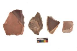 | Description / विवरण | There are n 4 of utilized worked cores and show irregular scar pattern on both dorsal and ventral side. One has a broken tip. |