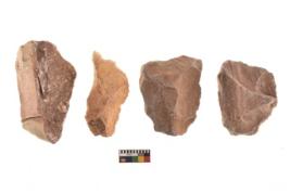 | Description / विवरण | There are n 4 of utilized worked cores and show irregular scar pattern on both dorsal and ventral side. They have sharp edges. |