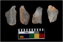 | Description / विवरण | There are n 4 utilized flake cores. There are multi directional irregular scar pattern on them. All of them are tapering at one end. |