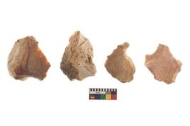| Description / विवरण | There are n 4 of utilized worked cores and show irregular scar pattern on both dorsal and ventral side. One has a broken tip. |