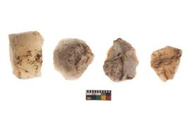 | Description / विवरण | There are n 4 of utilized worked cores and show irregular scar pattern on both dorsal and ventral side. One has a flat base. |
