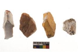 | Description / विवरण | There are n 4 of utilized worked cores and show irregular scar pattern on both dorsal and ventral side. Two have a broken tip. |