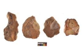 | Description / विवरण | There are n 4 of utilized worked cores and show irregular scar pattern on both dorsal and ventral side. Three are tapering at one end while one has a broken tip. |