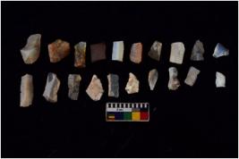 | Description / विवरण | There are n 20 Flake tool; There are multidirectional irregular scar pattern on them. few have blunt edges, Some of them are tapering at one end. |