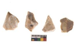 | Description / विवरण | There are n 4 of utilized worked cores and show irregular scar pattern on both dorsal and ventral side. One has a flat base. |