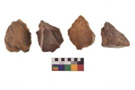 | Description / विवरण | There are n 4 of utilized worked cores and show irregular scar pattern on both dorsal and ventral side. One has a flat base. |