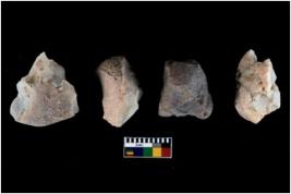 | Description / विवरण | There are n 4 of utilized worked cores and show irregular scar pattern. Three have a broken tip. |