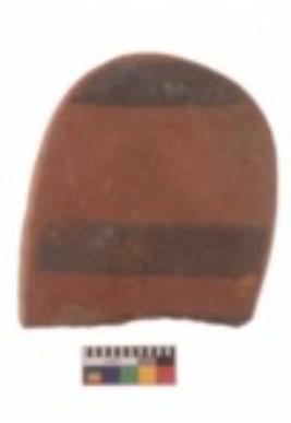 | Description / विवरण | Potters tool of Black-on-Red ware with two thick horizontal bands. |