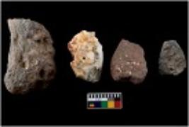 | Description / विवरण | There are n 4 of utilized worked cores. They show multidirectional irregular scar pattern. One is tapering at one end. |