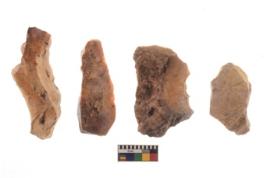 | Description / विवरण | There are n 4 of utilized worked cores and show irregular scar pattern on both dorsal and ventral side. Two are elongated in shape. |